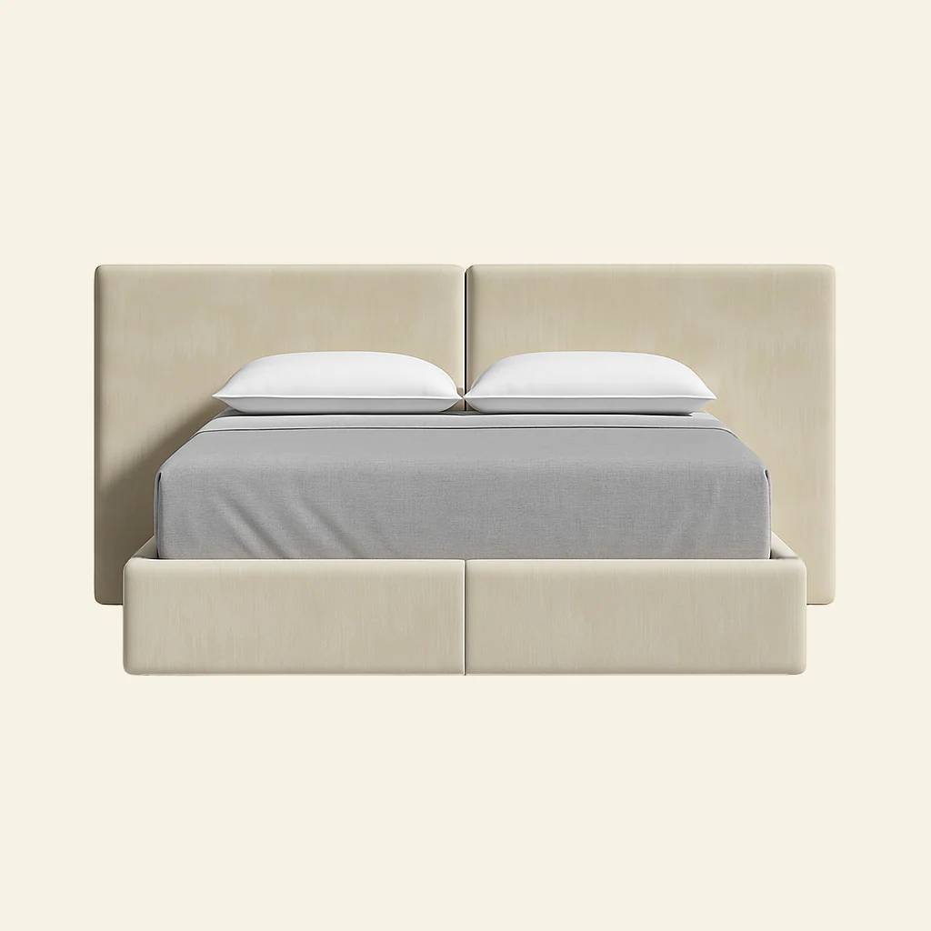 The Wynn Upholstered Bed blends contemporary style with luxurious comfort. It features a sleek extended headboard, designed to be the centrepiece of your bedroom. The side rails and foot end are padded and upholstered in your choice of over 40 fabrics, adding a soft yet sophisticated touch to your bedroom. This bedframe is constructed from a solid hardwood mix, offering exceptional strength and stability.